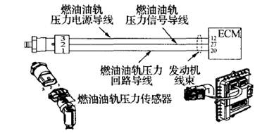 安裝在高壓燃油共軌內,其功能是:ECM利用該傳感器信號確定油軌中的燃油壓力,同時(shí)利用它來(lái)計算燃油供油量,工作范圍在0~1500 Ba,。傳感器出現故障將導致發(fā)動(dòng)機動(dòng)力下降、轉速降低甚至停車(chē)。