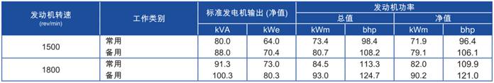 上表所有額定功率數據均為ISO/TR 14396/IS0 8528條件下操作時(shí)數據。