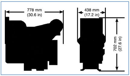 尺寸                                 長(cháng)778 mm (30.6 in) 寬438 mm (17.2 in)  高702 mm (27.6 in)