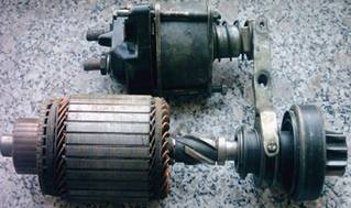 直流電動(dòng)機常采用串激直流電動(dòng)機,其特點(diǎn)是低速時(shí)轉矩很大,P=πnT,隨轉速n↑,轉矩T↓,這一特征非常適合發(fā)動(dòng)機起動(dòng)的要求。