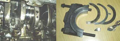 造成此故障的現象:拆解發(fā)動(dòng)機油底殼時(shí),發(fā)現有已經(jīng)扭曲的曲軸止推瓦破裂脫落的瓦邊,拆下4缸軸承蓋,發(fā)現曲軸止推瓦破碎裂,導致磨壞曲軸和缸體軸承座及軸承蓋的前端面,并打壞缸套。 造成此故障的原因分析:主要原因是用戶(hù)在更換變速箱時(shí)(“大同”更換成“陜齒”變速箱),由于一軸尺寸不一樣,導致更換上去后,曲軸承擔了軸向向前的推力,造成第四止推瓦磨損。 此故障的維修解決方法:更換缸體、曲軸及相關(guān)損壞件。具體圖片如下: