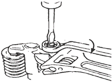 不要在松開(kāi)氣門(mén)橋的狀態(tài)下松開(kāi)或鎖緊氣門(mén)調整螺栓螺母。用扳手固定氣門(mén)橋防止氣門(mén)桿彎曲。然后松開(kāi)氣門(mén)橋調整螺栓的螺母。
