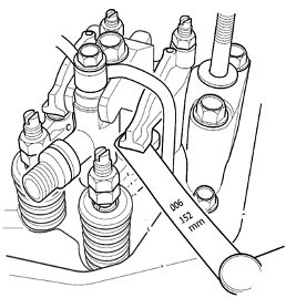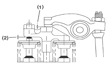 對于四氣門(mén)汽缸頭,兩氣門(mén)是由在兩氣門(mén)之間的單一搖臂通過(guò)氣門(mén)橋帶動(dòng)的。在調整搖臂和氣門(mén)橋之間的間隙1前該間隙2應首先設置。