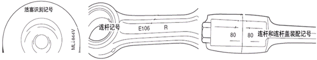 裝入汽缸時(shí),活塞頂部的刻印標識必須朝向噴油泵端,連桿上的記號必須朝向發(fā)動(dòng)機的飛輪末端。