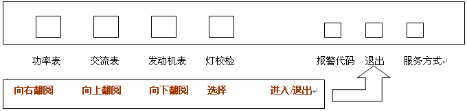 當發(fā)電機組控制器+(GSC+),置于服務(wù)方式時(shí),其正面的小鍵盤(pán)開(kāi)關(guān)上有替換的功能,這些功能圖示如下: