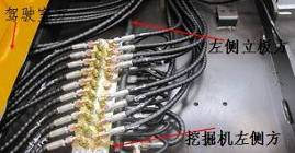 9個(gè)先導壓力傳感器,從左側立板方向到挖掘機左側方向順序分別為(如圖):動(dòng)臂下降壓力傳感器,信號線(xiàn)為207號線(xiàn)  鏟斗卸載壓力傳感器,信號線(xiàn)為204;鏟斗挖掘壓力傳感器,信號線(xiàn)為205; 動(dòng)臂提升壓力傳感器,信號線(xiàn)為206 ; 左行走壓力傳感器線(xiàn)號為:200; 右行走壓力傳感器,信號線(xiàn)為201;  小臂挖掘壓力傳感器,信號線(xiàn)為203; 小臂卸載壓力傳感器,信號線(xiàn)為202; 回轉壓力傳感器,信號線(xiàn)為208