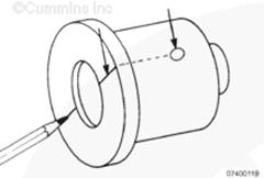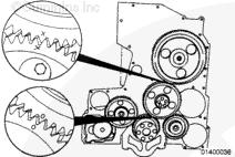 凸輪軸惰輪軸和液壓泵惰輪軸中的油孔必須按照特定方位安裝。如果軸的方位不正確,則會(huì )導致齒輪襯套故障。