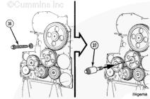 注: 用于較新的發(fā)動(dòng)機上的軸上沒(méi)有使用拉拔器所需的螺紋。松開(kāi)螺釘 (36),但不要全部拆下。