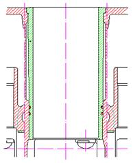 濕式缸套結構,缸套厚8.5mm。強度高,變形小,有利于降低機油耗;采用上止口定位,制造性能好;缸孔表面容易強化,耐磨性好,壽命長(cháng);維修性好;而且采用濕式缸套結構,氣缸體鑄造容易,廢品率低。