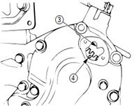 • 將噴油泵正時(shí)觀(guān)察孔指針③和凸輪軸正時(shí)齒輪標記“O” ④對齊