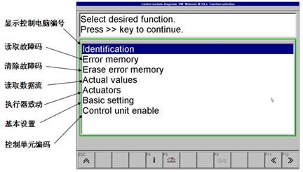 擴展的控制單元診斷通過(guò)選擇菜單幫助能夠快捷和易于車(chē)輛識別和在車(chē)上進(jìn)行控制單元搜索