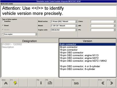 F12 至繼續選擇菜單,再次選擇菜單上用于車(chē)輛時(shí)別的要求的參數(驅動(dòng)型式、車(chē)型、型號等)可以被選擇。