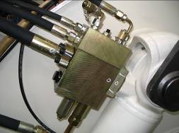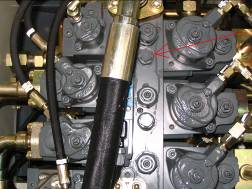 應為390 bar,否則調節工作閥塊動(dòng)臂調節螺釘 ,如下圖里側螺釘。