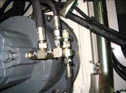 2 檢查各部位閥塊、管接頭、螺堵、軟管、堵頭、是否漏油。