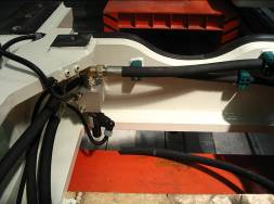 為了在檢測車(chē)時(shí),防止誤操作使車(chē)行走,旋轉傷人。需要斷開(kāi)駕駛室底版走行閥塊的A口油管