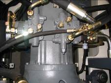 踩后退踏板,調左行走制動(dòng)閥下面的黑六角螺釘,使左行走制動(dòng)閥上兩個(gè)測口壓力為23 bar。調右行走制動(dòng)閥上面的黑六角螺釘,使右行走制動(dòng)閥上兩個(gè)測口壓力為23 bar。如下圖。