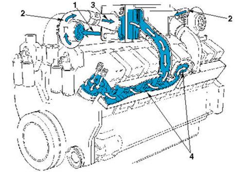 船用發(fā)動(dòng)機上的渦輪增壓器為水冷式。軸承殼體和渦輪增壓器渦輪殼體為水冷式。