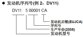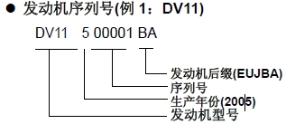 發(fā)動(dòng)機型號和序列號設置在圖示位置。當尋求必要的產(chǎn)品保證和部件訂購時(shí),這些數字是必要的。同時(shí)通過(guò)各數字的位置也指明了發(fā)動(dòng)機的型號和系列號。