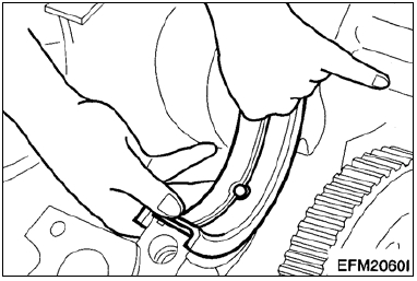 � 用清潔的發(fā)動(dòng)機油涂抹機軸軸頸和軸銷(xiāo)部件,將主軸承安裝進(jìn)軸承帽后把它安裝到氣缸體上,一定要確認數量,以避免更換軸承蓋。