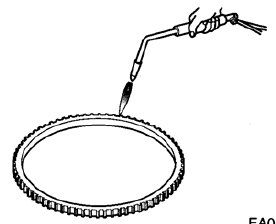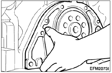 � 在氣缸體表面要安裝飛輪殼的部位安裝墊圈。(為防止墊圈滑下,在氣缸體表面上涂抹油脂。)