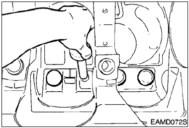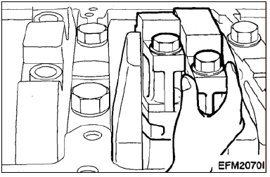 � 按氣缸號碼的順序排列活塞總成并在連桿和軸承蓋上安裝軸承。但是,小心不要互換連桿和軸承蓋的軸承。