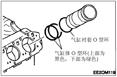 � 用完好的O 型環(huán)替換,上部插入氣缸套,下部插入氣缸體。