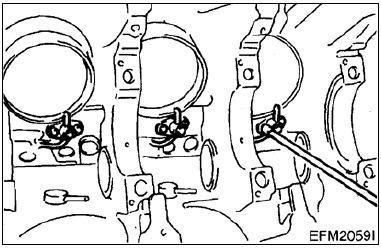 � 用機油涂抹連桿螺桿的螺旋部分和螺帽部分,涂到2~3 圈以后用指定的扳手擰緊(10kg.m+90°+10°)。