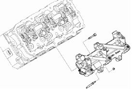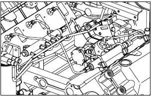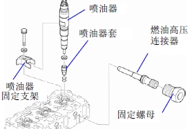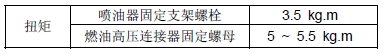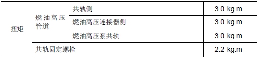 � 在共軌和燃油高壓連接器之間安裝燃油高壓管道,然后一個(gè)氣缸一個(gè)氣缸地緊固至規定扭矩。