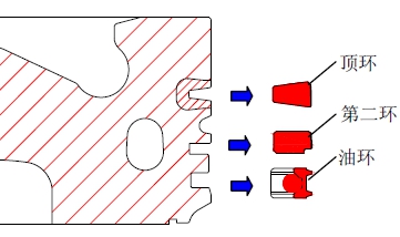 � 識別環(huán)底端的“Y”或“TOP”標志,以免和活塞環(huán)頂部的位置顛倒,將有標志的一端向上。(標有“Y”或“TOP”的一面為上面。)