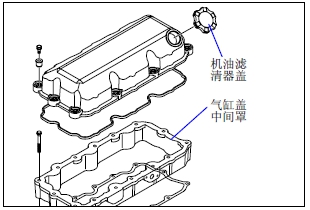 � 將機油濾清器蓋安裝到氣缸體,按對角順序擰緊螺栓。