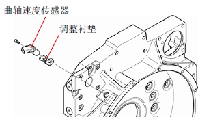 � 測量傳感器組裝部件和飛輪之間的間隙,使用調整襯墊進(jìn)行組裝。