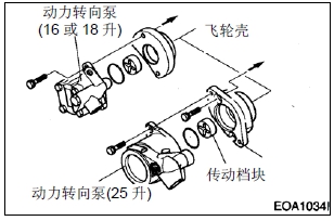 � 將動(dòng)力轉向泵組裝到飛輪殼上。