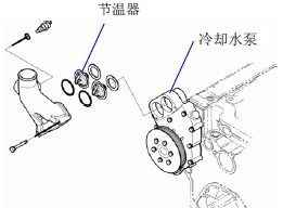 � 將 O 型環(huán)安裝到節溫器上,然后緊固固定螺栓組裝冷卻水管。