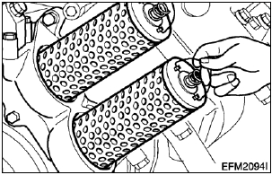 � 當更換新的燃油濾清器時(shí),在濾芯中加油后組裝燃油濾清器。
