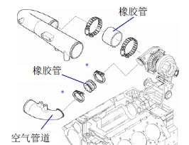 � 安裝空氣管道,然后將橡膠管連接到渦輪增壓器上并使用夾鉗組裝。