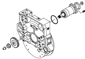 � 在機油泵表面要安裝壓力調節閥的位置上安裝墊圈,并將壓力調節閥置于其上。