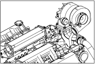� 為排氣彎管安裝襯墊并安裝渦輪增壓器,旋緊螺栓。