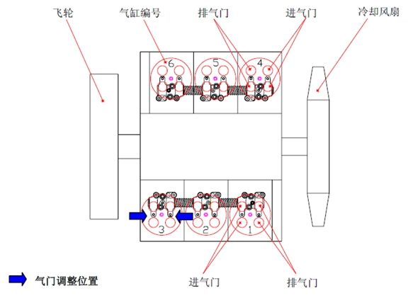 * 當調整發(fā)動(dòng)機制動(dòng)從動(dòng)活塞時(shí),只調整相應氣缸編號的排氣門(mén)。