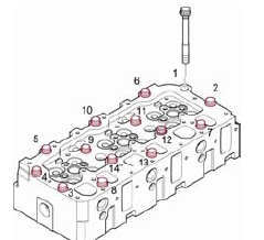 � 在氣缸蓋螺栓上涂發(fā)動(dòng)機油,根據組裝的順序,使用規定扭矩進(jìn)行組裝。