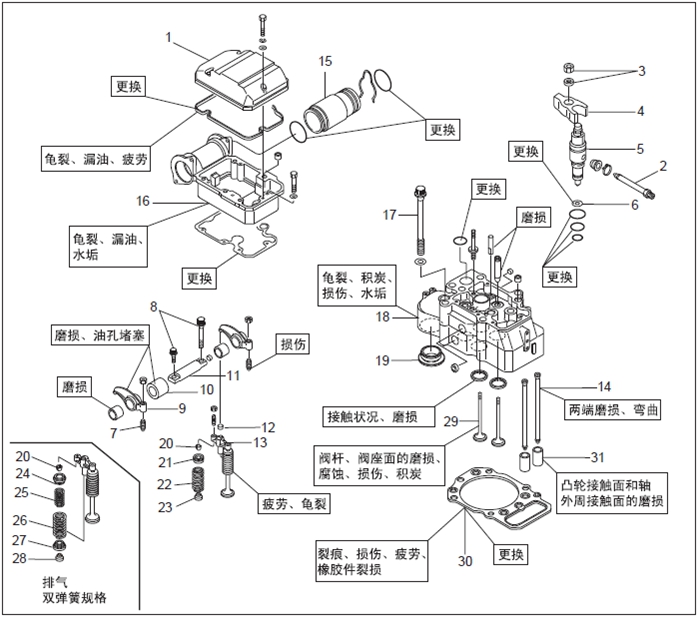 2. 進(jìn)排氣系統的解體,檢修,組裝