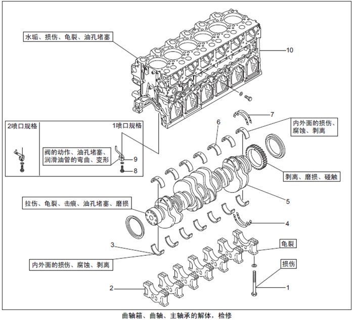(2) 檢查曲軸箱的缸套安裝部位,確認無(wú)壓損、腐蝕等異常。