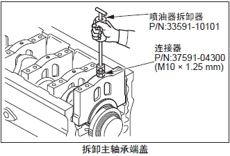 注: 主軸承端蓋的緊固要領(lǐng),參照「發(fā)動(dòng)機本體的組裝」的「安裝主軸承端蓋」項。