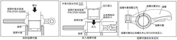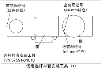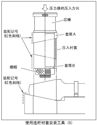 (2) 套筒A裝入心軸,套筒A的裝配記號(紅色刻線(xiàn))對準座臺的裝配記號(紅色刻線(xiàn))后安裝在連桿襯套內。