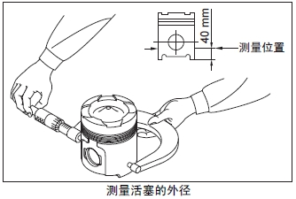 測量活塞銷(xiāo)孔的內徑。超過(guò)極限值時(shí)更換新活塞。