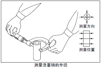 測量活塞銷(xiāo)的外徑。超過(guò)極限值時(shí)更換新的活塞銷(xiāo)。