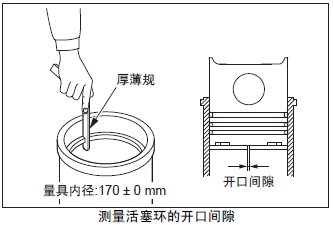 注: 用活塞將活塞環(huán)水平地放入標準的量器或缸套內。