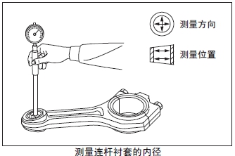 測量連桿襯套的內徑。超過(guò)極限值時(shí)更換新的連桿襯套。