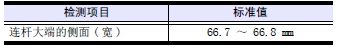 (2) 檢測連桿大端的側面( 寬)。不在標準值內時(shí),更換新品。