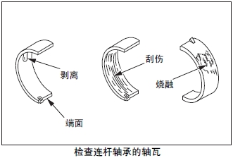 (1) 目測檢查連桿大端的側面。發(fā)現磨損、損傷等異常時(shí),更換新的連桿。