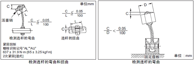 注: 彎曲和扭曲的檢測,在將連桿端蓋按照規定扭矩緊固后進(jìn)行。